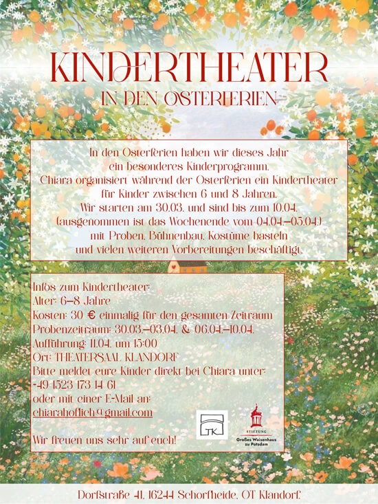 Veranstaltungen im THEATERSAAL KLANDORF, Dorfstr. 41, 16244 Schorfheide, OT Klandorf